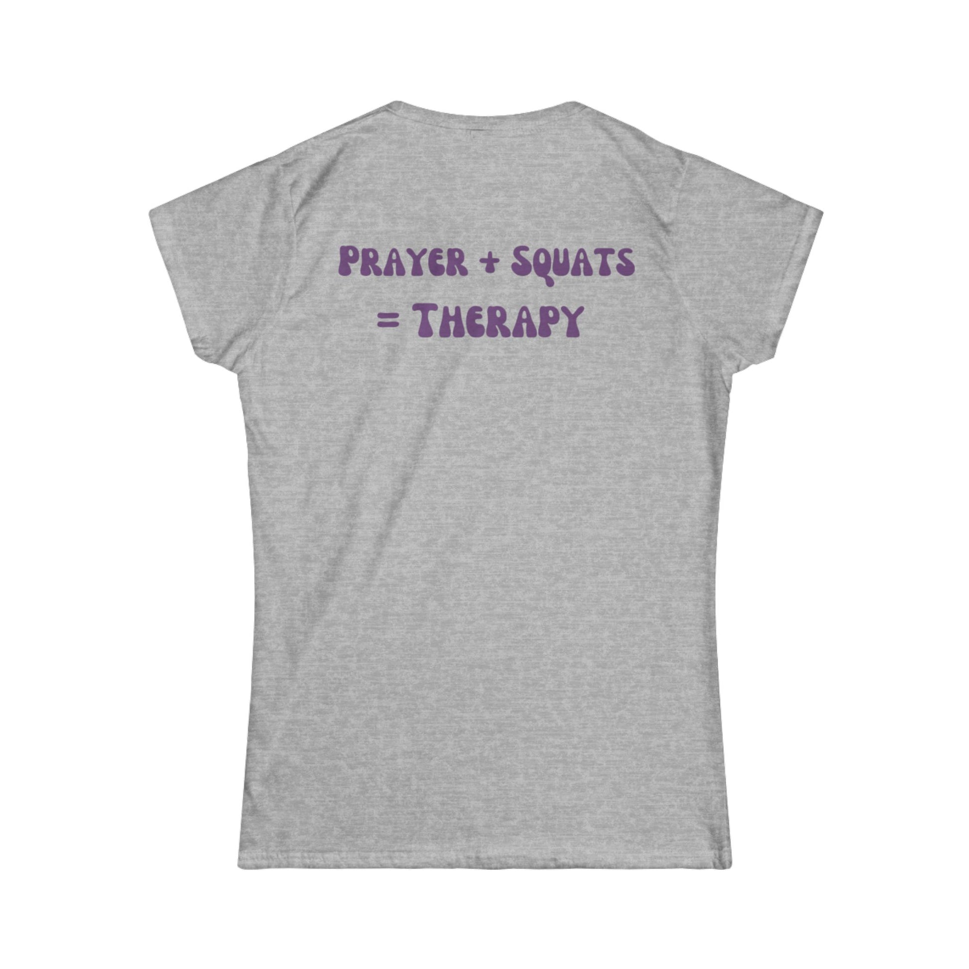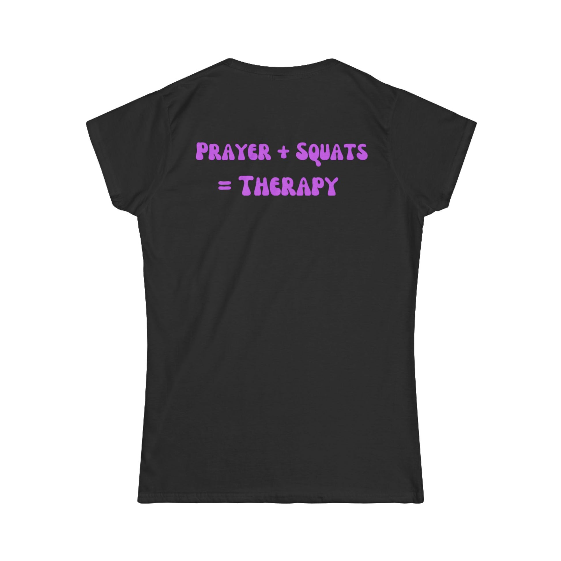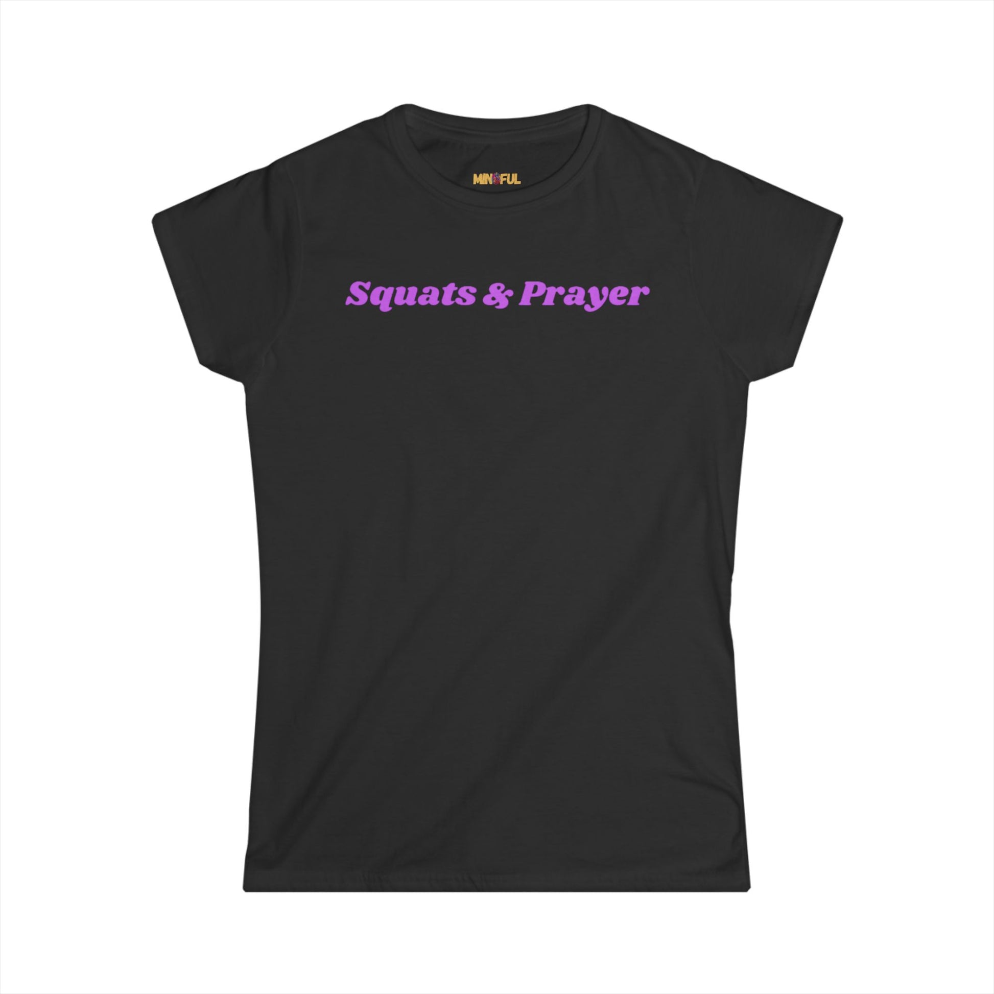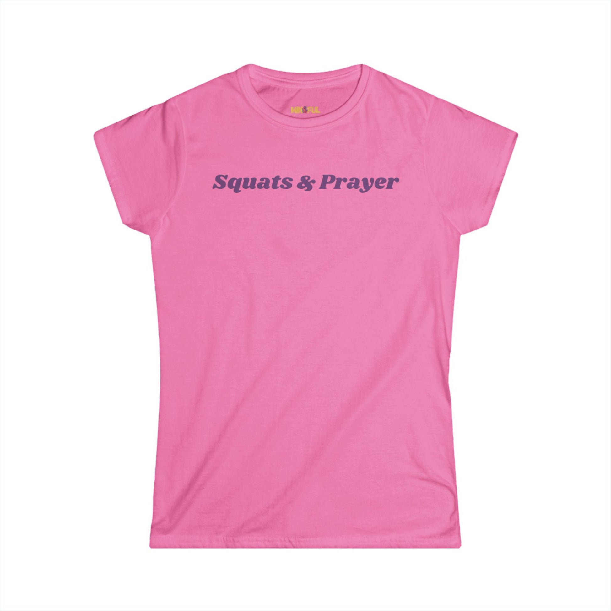Lead with Prayer & finish with squats. Power meets purpose in our Squats & Prayers tee — Made for women who lift heavy and live with intention. Crafted from soft, breathable fabric with a flattering feminine fit, this tee is perfect for crushing workouts or powering through your day with faith and focus. Whether you're hitting the gym or hitting your goals, this shirt is a bold reminder that strength starts on the inside.
