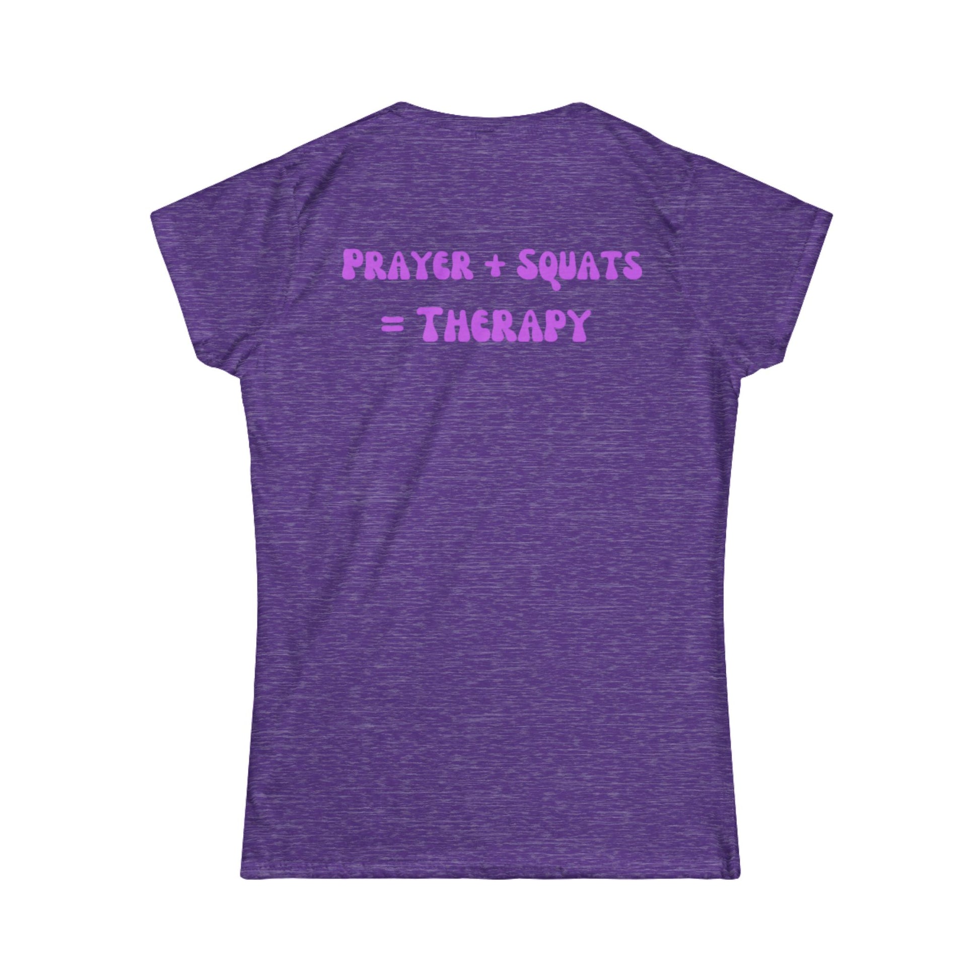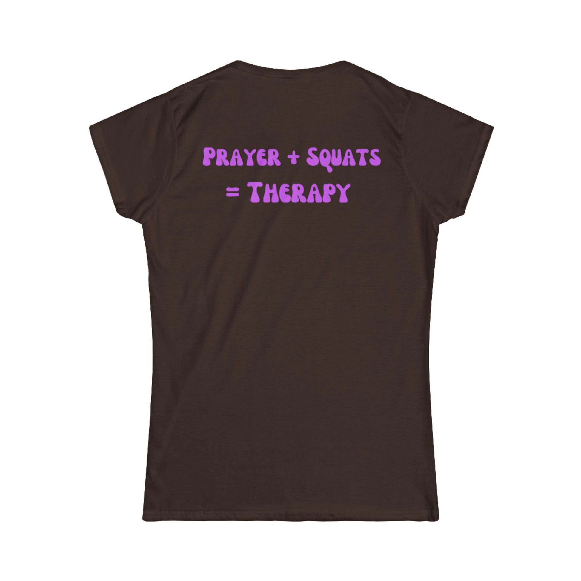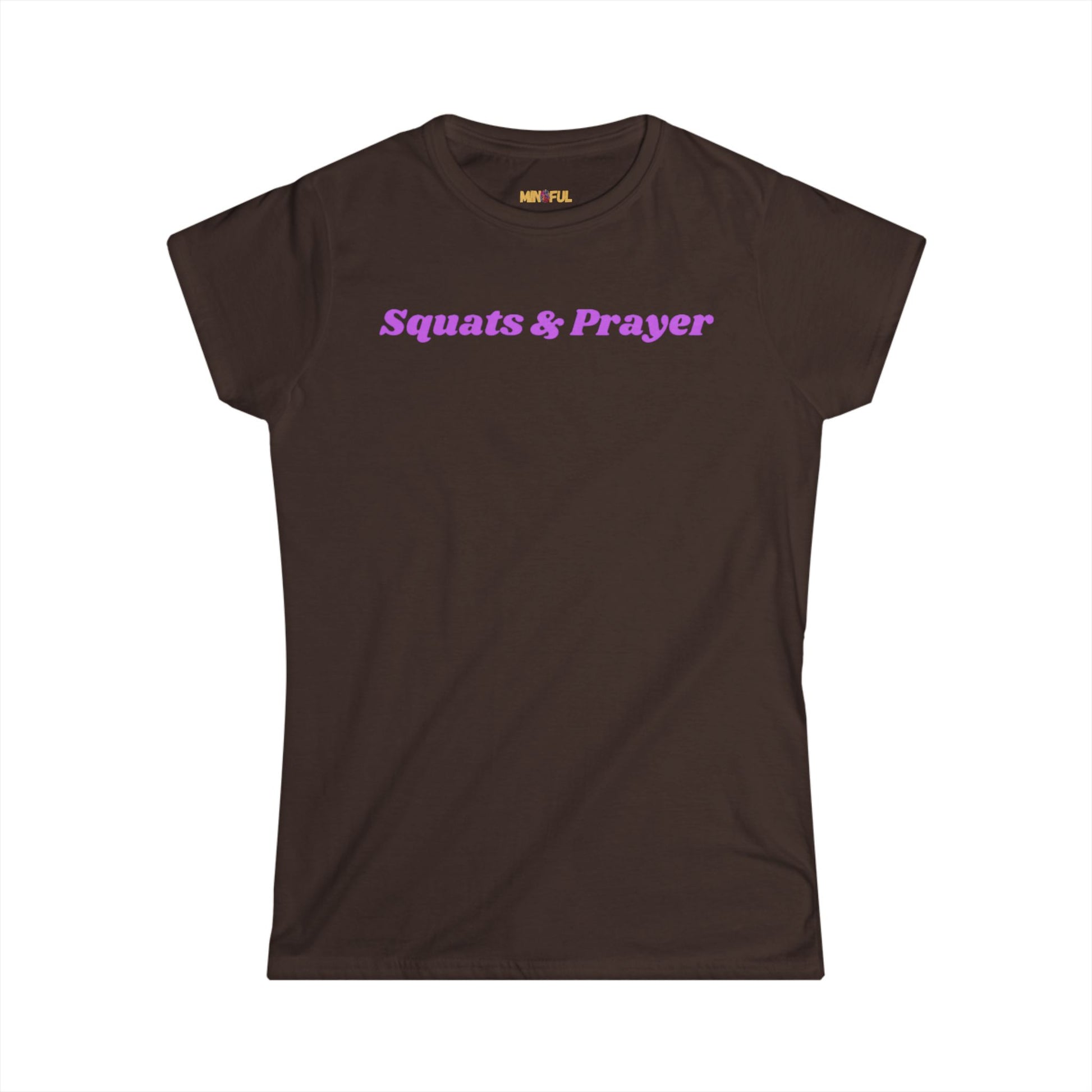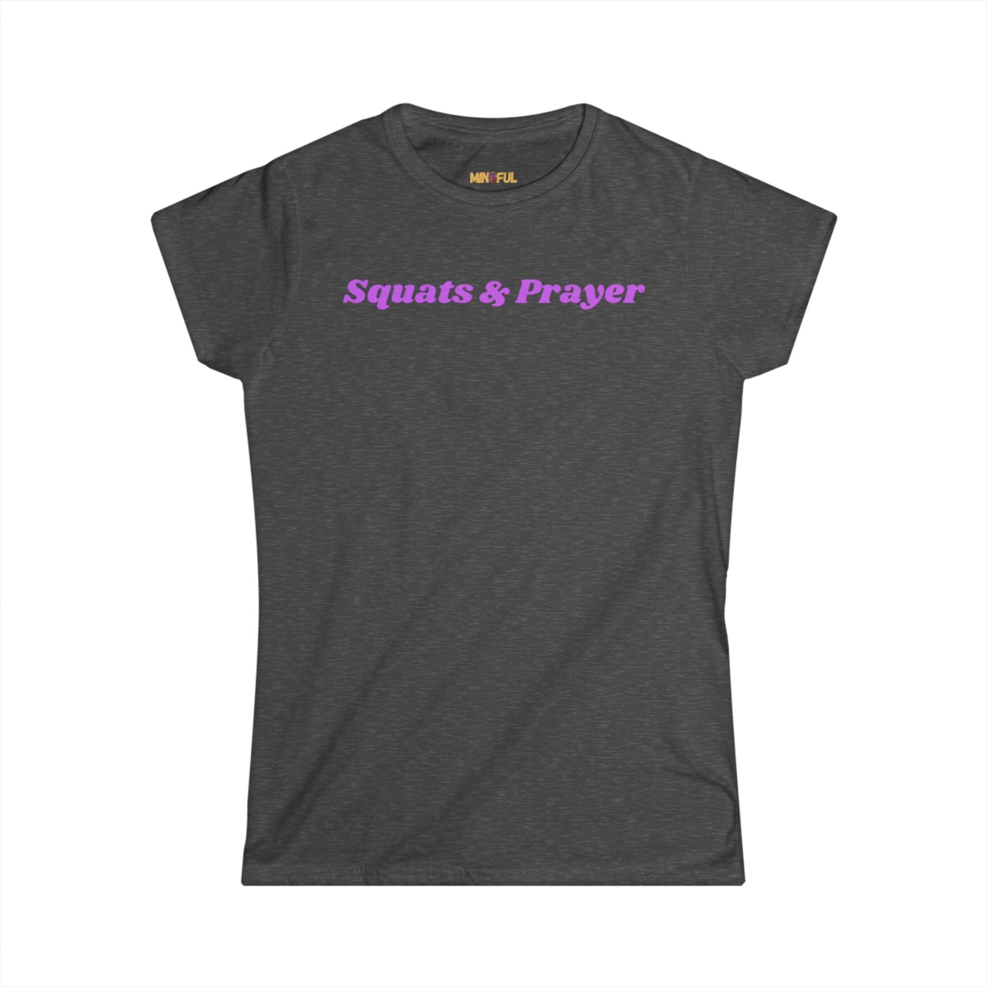 Lead with Prayer & finish with squats. Power meets purpose in our Squats & Prayers tee — Made for women who lift heavy and live with intention. Crafted from soft, breathable fabric with a flattering feminine fit, this tee is perfect for crushing workouts or powering through your day with faith and focus. Whether you're hitting the gym or hitting your goals, this shirt is a bold reminder that strength starts on the inside.